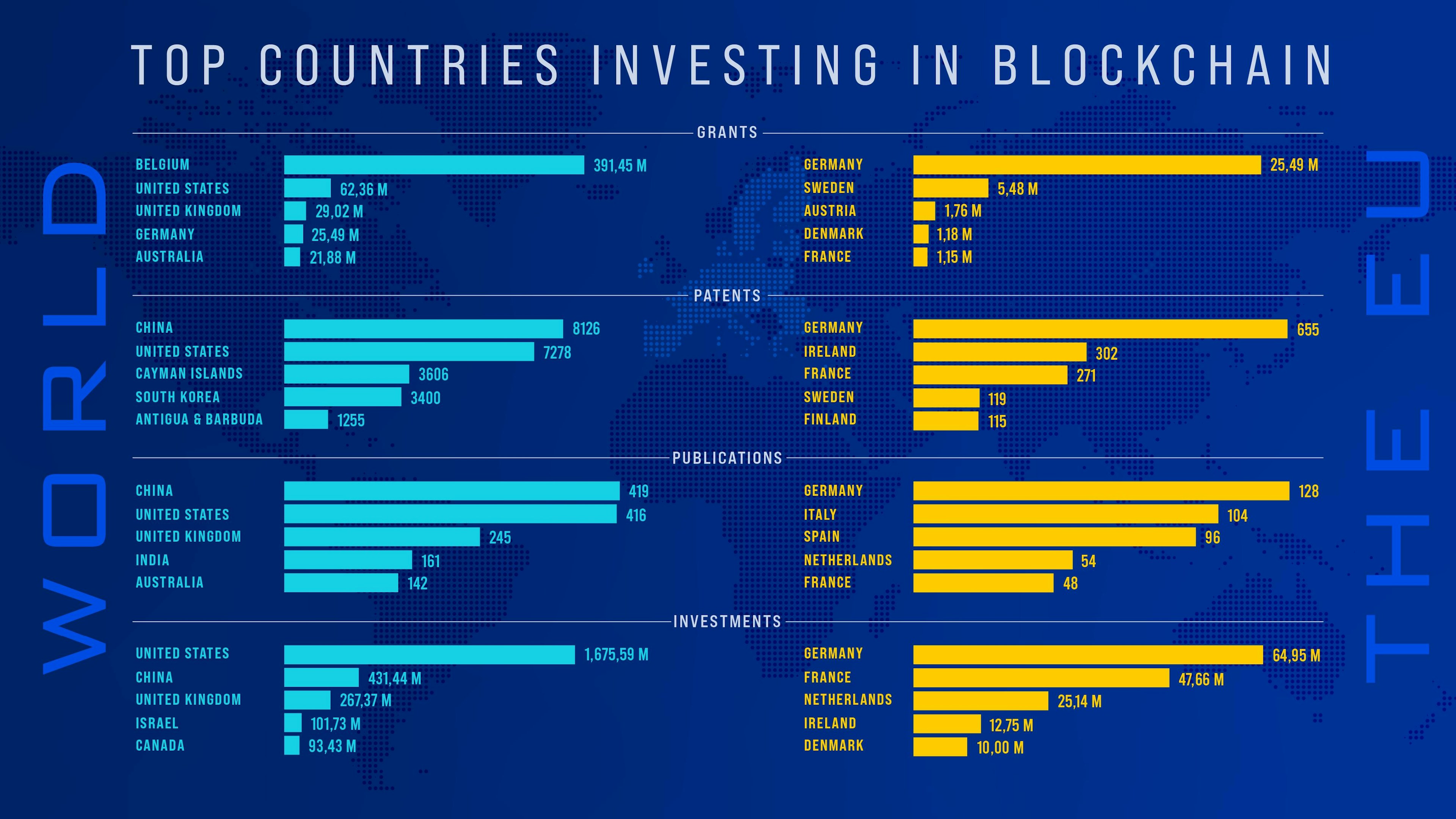 According to L’Atelier’s technology intelligence engine, the European Commission, through Brussels, has been the highest investor in blockchain initiatives via grants since 2016. It spends almost six times the US budget for the same technologies.