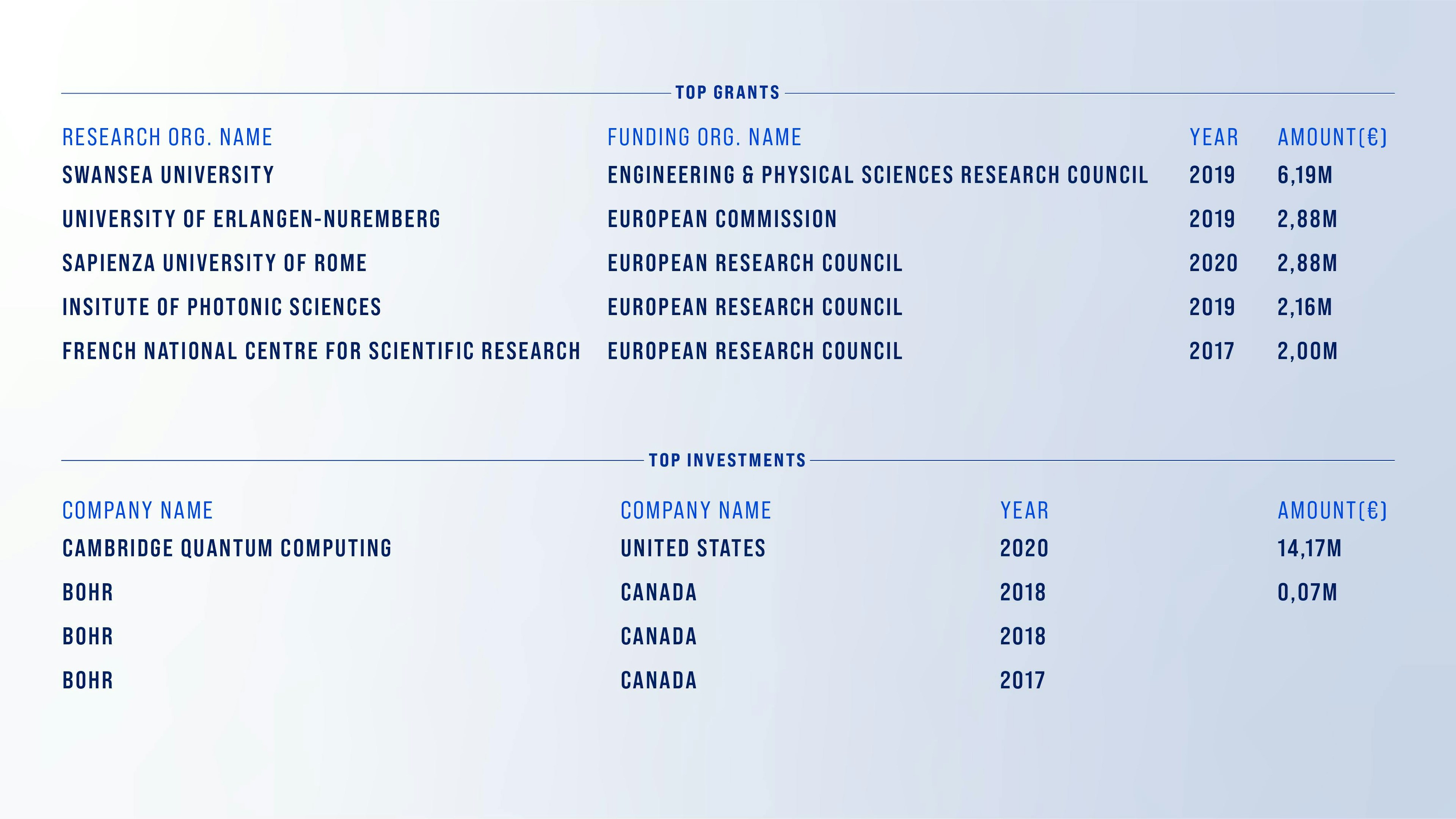 Two main private companies have been targets of investment between 2017 and 2020. The investors are American and Canadian; the startups—Cambridge Quantum Computing and Bohr—both specialise in quantum software. Their algorithms are respectively English and Polish.